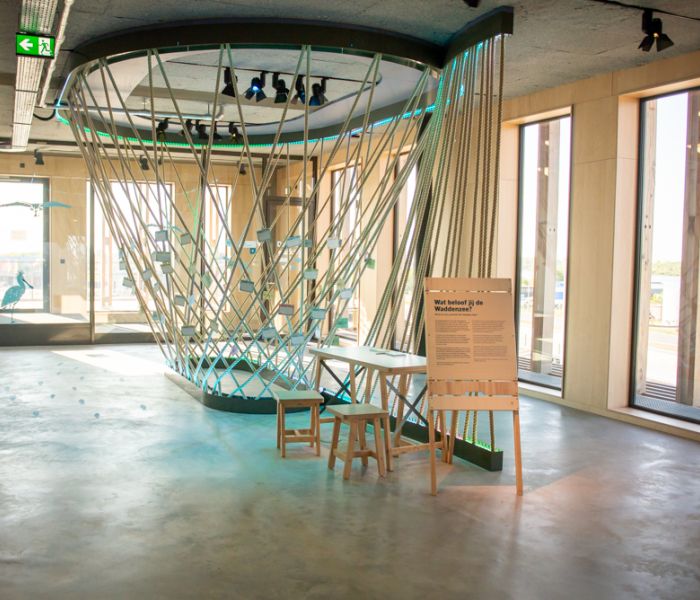 De wandafwerking en schilderwerk is zo strak opgeleverd dat er educatieve films op geprojecteerd worden.